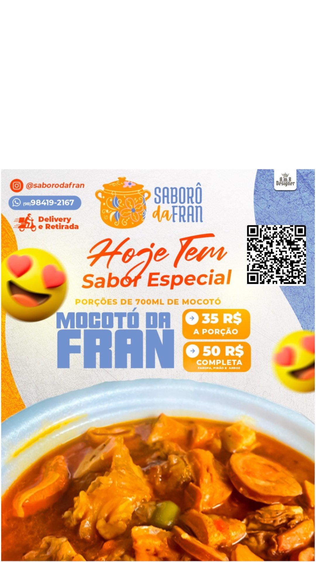 🍽️Saborô da Fran: A tradição da culinária maranhense em cada prato! 🇧🇷✨ Somos um restaurante com mais de 15 anos levando sabor e alegria para suas festas e eventos. 🎉 🐔 **Deliciosas galinhas caipiras** por encomenda, 🍲 **mocotó caseiro**, 🍝 **massas artesanais** e 🎂 **bolos irresistíveis**! Atendemos São Luís e região. 🌆 #SaborôDaFran #Restaurante #GalinhaCaipira #Mocotó #ComidasTípicas #SãoLuís #Eventos #Festas #Encomendas ---